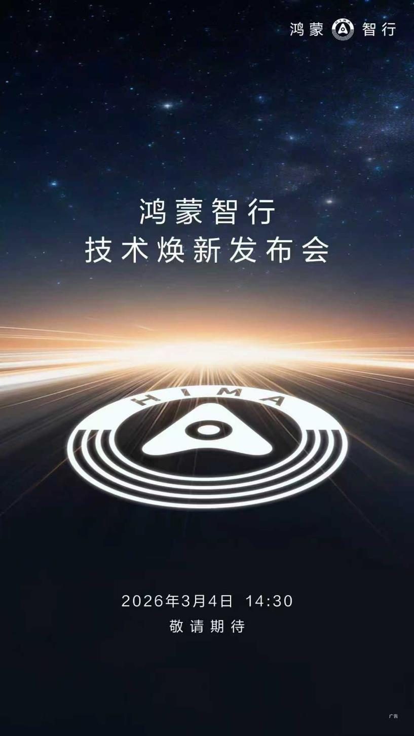鸿蒙智行官宣3月4日技术焕新发布会 开年首发全栈技术跃迁