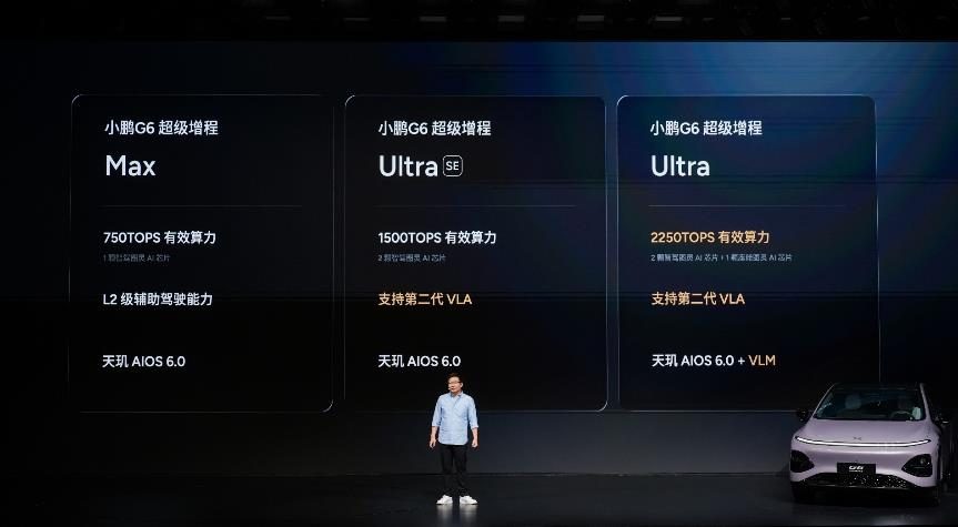 强大的智能表现背后,是同级领先的算力支撑。小鹏 G6 超级增程拥有同级第一的车端有效算力,整车算力至高可达 2250TOPS,其中 Max 版本标配 1 颗智驾图灵 AI 芯片,可实现 750TOPS 有效算力;Ultra SE 版本搭载 2 颗智驾图灵 AI 芯片,算力达 1500TOPS;Ultra 顶配版本搭载 3 颗图灵 AI 芯片,实现 2250TOPS 峰值算力,全版本算力配置均可完美适配全场景智能出行需求。