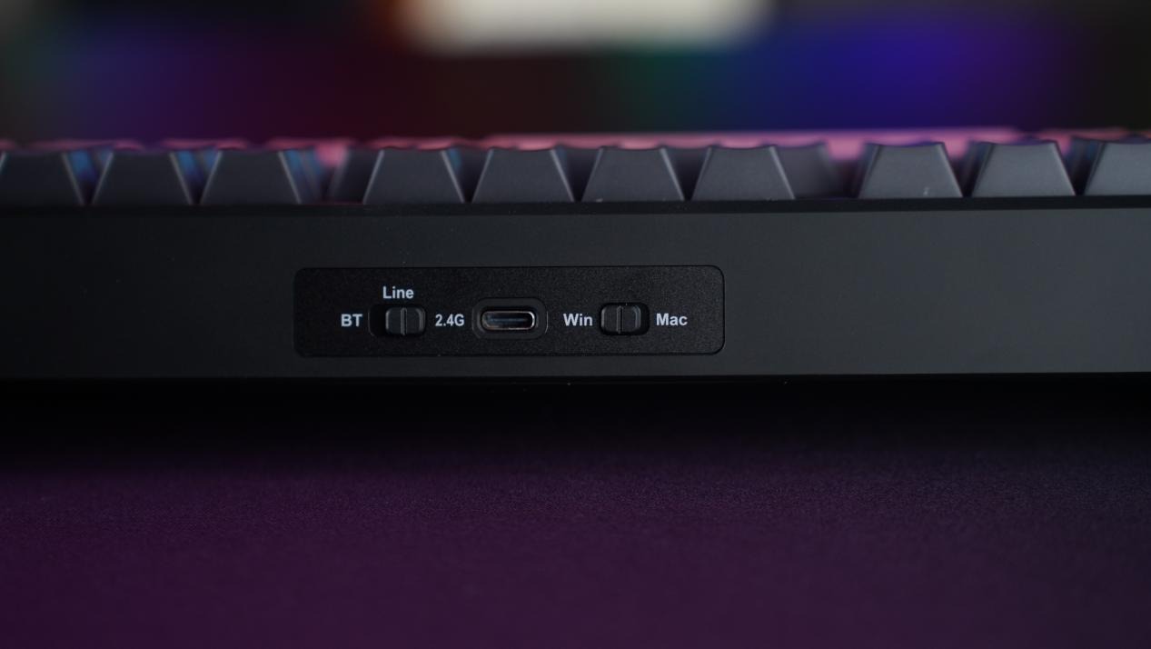 此外,键盘配备三模切换开关、Type-C接口,2.4G接收器、蓝牙;键盘同步支持Win和Mac的键盘按键切换,丰富使用者适配体验的同时,整体设计简约且辨识度高。