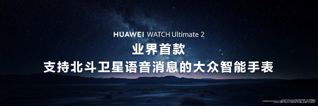 HUAWEI WATCH Ultimate 2 非凡探索为北斗卫星消息提供移动终端硬件,需在空旷无遮蔽处使用。首次使用前需在有地面网络的环境下,通过手表畅连应用激活(配合 iOS 系统使用时手表需独立联网),支持发送最长 10 秒钟的语音消息。此功能仅限中国大陆地区(不含港澳台地区)销售版本支持,使用范围仅限中国大陆地区(不含港澳台地区)。华为将配合公众测试验证,功能及活动规则详情请以官方信息为准。 ↑