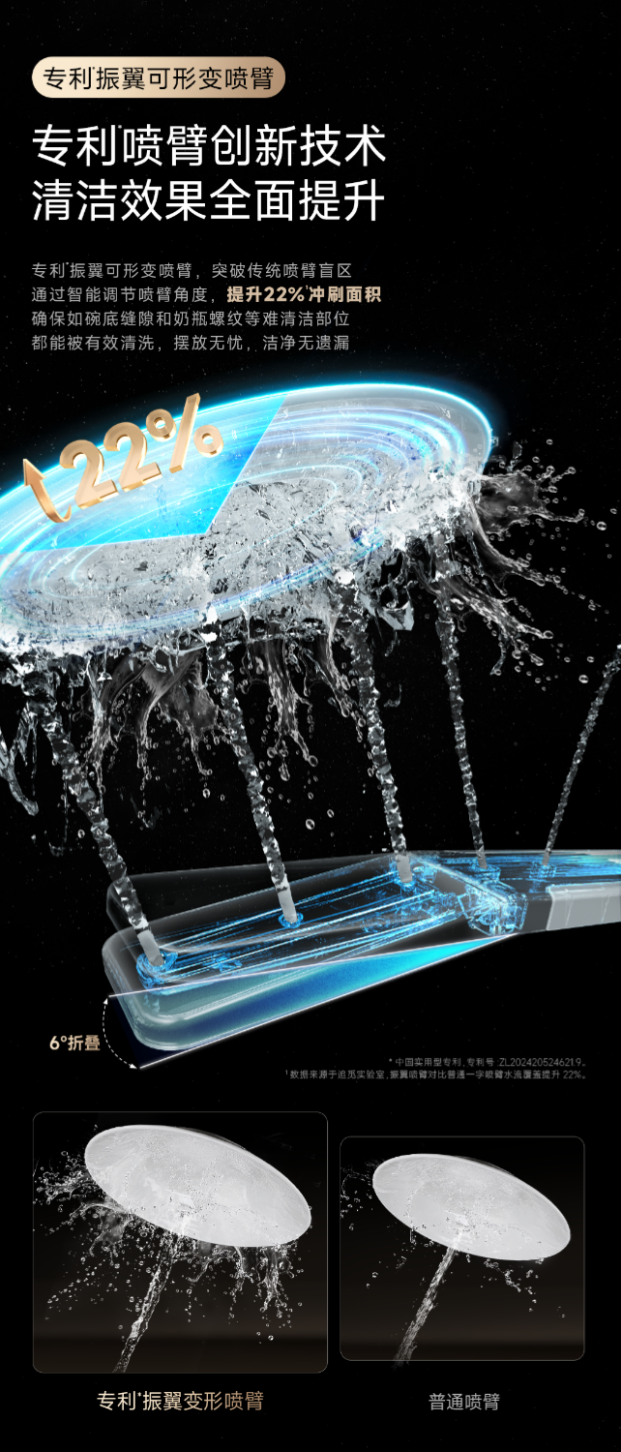 从烹饪前的油烟管控,到烹饪后的餐具清洁,追觅以全流程智能科技,覆盖中式厨房的每一处核心痛点。中式烹饪餐具繁杂、缝隙死角多,一直是家庭清洁的核心困扰,传统洗碗机往往难以实现全域洗净。追觅星穹洗碗机Z6000Pro以科技给出最优解:搭载「振翼™仿生探入洗」技术,让喷淋臂两端实现+2°至-4°智能柔性摆动。区别于传统固定喷淋结构,它如同灵活的智能触手,主动探入餐具缝隙与清洁死角,将洗涤覆盖面积提升22%,实现全域无死角洁净,让洗碗机真正适配中式厨房的使用需求。