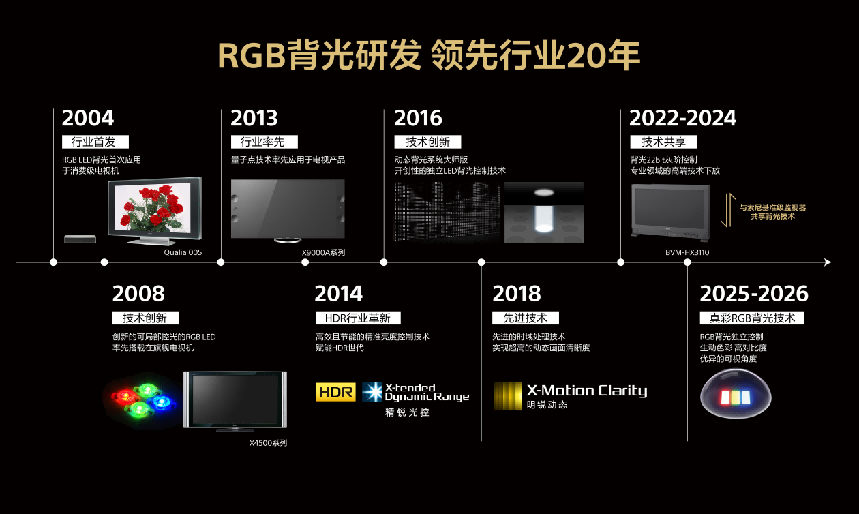 早在 2004 年,索尼就推出了全球首款 RGB LED 背光电视 QUALIA 005,率先将这项专业级显示技术引入消费电子领域,为行业奠定了 RGB 背光技术的发展基础。此后二十年间,从独立 LED 背光控制技术的开创性突破,到量子点技术的率先落地,从与基准级监视器共享的背光技术下放,到 22bit 灰阶控制的精准升级,索尼在 RGB 技术赛道的每一次迭代,都在推动行业向 “更真实、更细腻” 的画质边界迈进。而此次真彩 RGB 电视的亮相,正是这场长达二十年技术长跑的集中爆发。