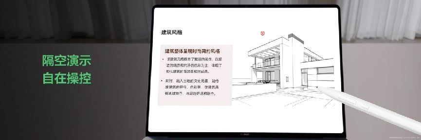更值得一提的是,屏幕支持十点触控和 HUAWEI M-Pen 3 多功能笔(需另行购买)。除了常规的手写批注、灵感记录,全新的空鼠模式堪称会议神器。开会演示时,不用再在激光笔和鼠标之间来回切换,长按笔身独立按键就能调出激光笔光标,上下键可直接翻页,双击还能点击确认链接,一支笔就能完成所有演示操作,让表达更加从容流畅。