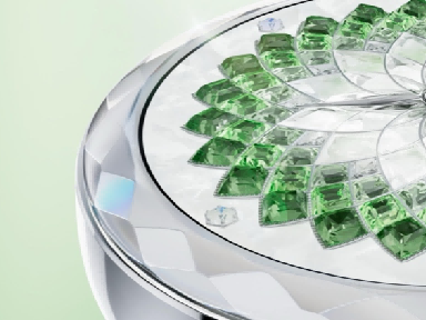 腕表的璀璨核心,来自 99 颗天然真钻的全手工镶嵌。表带以斐波那契黄金比例曲线为纹理,如同春日富有生命力的藤蔓自然延伸,98 颗天然钻石沿纹理手工镶嵌,流光随腕间动作流转辉映;表冠中央镶嵌 1 颗天然主钻,侧面精雕 18 个星钻切面,呈现出玉兰花悄然绽放的优雅姿态,每一次抬腕,都是高端品味的无声表达。