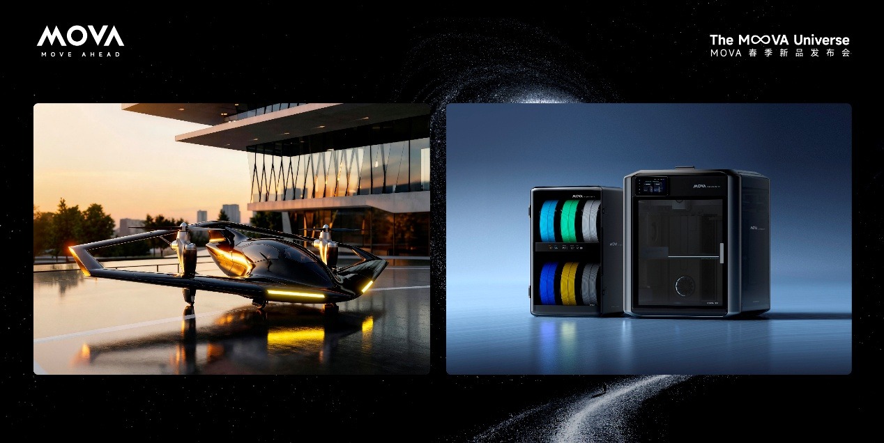 与此同时,MOVA宣布全面布局3D打印、飞行汽车及汽车相关赛道。在3D打印领域,MOVA依托精密控制与AI视觉算法的技术积累,通过快速原型验证与个性化定制能力,让“创造”逐步走进家庭。在未来出行领域,MOVA推出eVTOL未来飞行汽车,探索低空经济时代的新型出行方式。