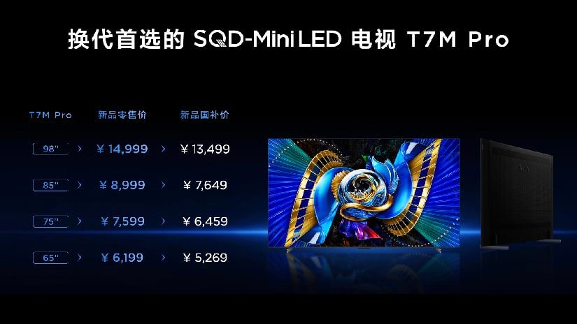 如果说TCL Q9M Pro是让更多人体验到SQD画质的轻旗舰,那么TCL T7M Pro则是让SQD-Mini LED技术真正走进千家万户的普及先锋。当同价位产品还在使用普通Mini LED技术,T7M Pro已经进化到跨代的SQD-Mini LED技术,形成了降维打击,成为消费者换代首选。