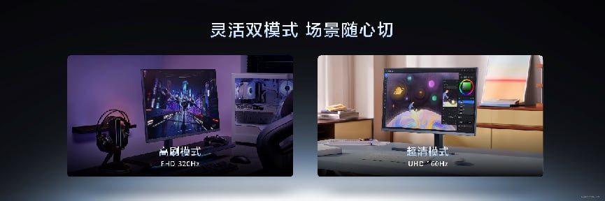 除日常办公外,游戏娱乐同样是显示器的核心应用场景。为打造沉浸的游戏体验,HUAWEI MateView GT 27英寸超清版Sound款创新引入“双模显示”切换功能,用户可在4K 160Hz的高清画质与1K 320Hz的极速流畅之间自由切换,兼顾细腻画面与竞技速度。在响应速度方面,该显示器提供多档可调选项,并支持“用户自定义”模式,允许玩家根据具体游戏场景手动调整响应策略,以平衡清晰度与拖影控制。