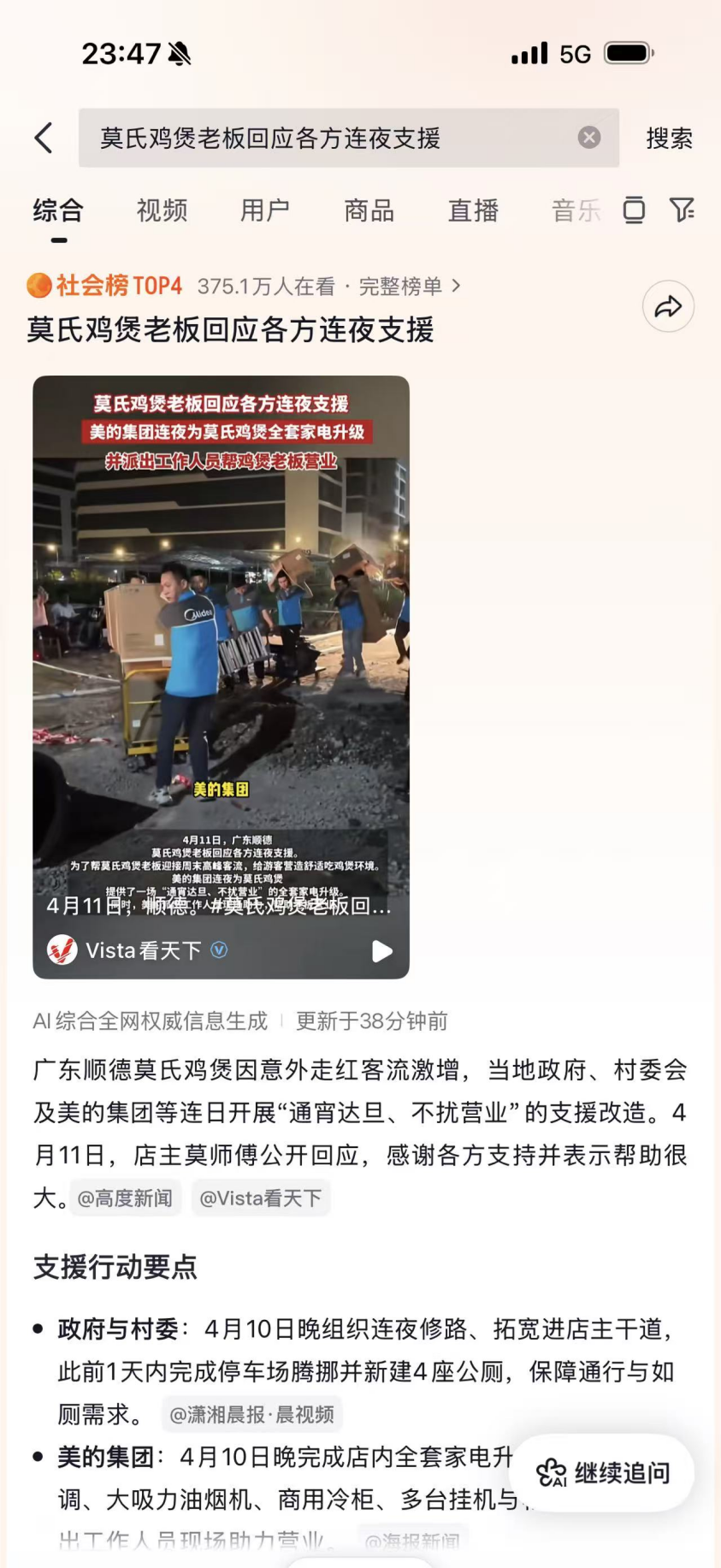 顺德政企接力驰援莫氏鸡煲:政府修路疏导,美的连夜送装家电