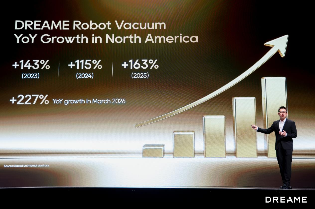 而追觅早已用实打实的市场表现,征服了这片全球最挑剔的市场。数据显示,2025 年追觅扫地机北美市场全年增长率达 163%,2026 年第一季度同比增长率持续攀升至 159%,2026 年 3 月单月同比增长率更是飙涨至 227%,增速稳居行业榜首。在北美这个由本土品牌 iRobot 深耕数十年的成熟市场,追觅不靠低价内卷,仅凭技术驱动的高端产品,就实现了对高端市场的快速渗透,收获了硅谷工程师群体、全球顶级科技媒体、专业测评机构的清一色好评。