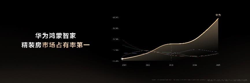 “市场占有率取得断层式第一”,相关数据援引自 奥维云网于2025年12月家居罗盘行业分析数据,根据品牌表现分析栏目下的数据总结结论,2025年全国1-10月精装部品智能化楼盘中,华为品牌占有率为38.9%,2-10名总和为34%。该报告统计范围为 “中国内地”,统计周期为“2025年1月至2025年10月”,统计口径为 “例如:以精装部品智能家居系统品牌配套率为基准”。所述市场地位仅基于特定第三方机构在特定时间、特定范围与口径下的研究结果。市场竞争动态持续变化,不同研究机构的统计方法可能存在差异。 ↑