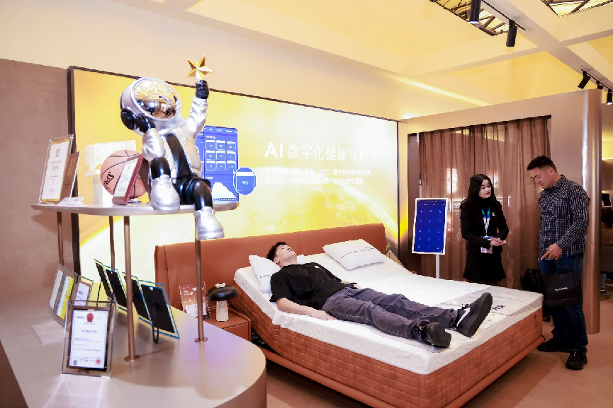 值得关注的是,本届 AWE 首次设立 E2 产业链融合创新馆,海思、聆思科技、瑞昱半导体等上游核心企业齐聚,星闪联接、端侧 AI、Wi-Fi 7 等底层技术集中亮相,加西贝拉、GMCC 美芝等压缩机企业展示超高效变频、环保冷媒技术,全方位彰显中国家电产业链的自主化硬核实力,为终端产品的智能化升级提供全链路支撑。而荣泰 RT9000 系列按摩机器人、慕思鸿蒙智选智能床、MPE AI CARE 智慧睡眠系统等产品,则从健康康养、睡眠监测等维度,精准匹配消费者的精细化需求,让科技真正融入生活的细微场景。