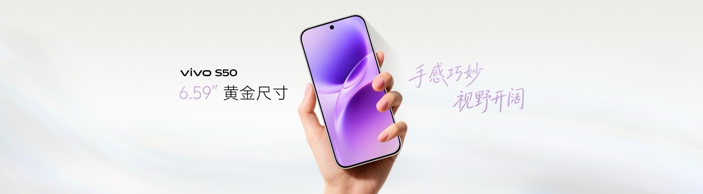 针对不同使用偏好,S50系列提供两种尺寸:vivo S50 采用 6.59 英寸大屏,通过内部布局优化让机身前后配重更接近 1:1,在追剧、游戏等场景下兼顾大视野与长时间握持舒适。