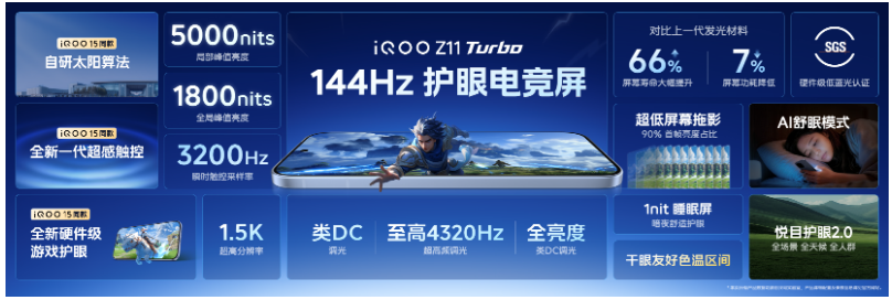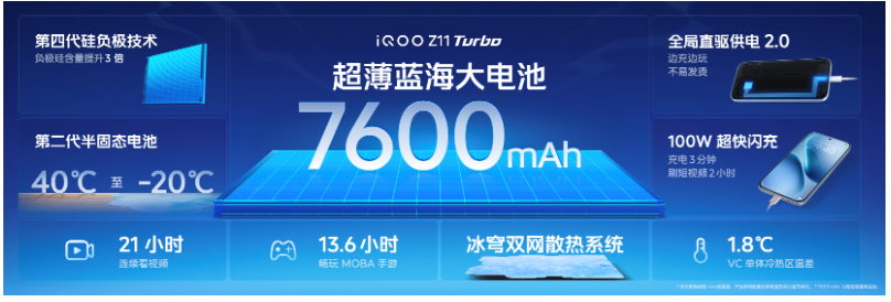 其技术普惠的行业标杆。iQOO始终致力于将旗舰级技术下放至中端市场:从Z7系列的120W快充,到Z9系列的6000mAh蓝海电池,再到Z11 Turbo的7600mAh超大电池与IP68防护,每一代产品都在打破“中端机必妥协”的行业潜规则。此次更是将144Hz护眼电竞屏、3D超声波指纹等旗舰配置全面普及,推动整个中端市场进入“体验为王”的新时代。