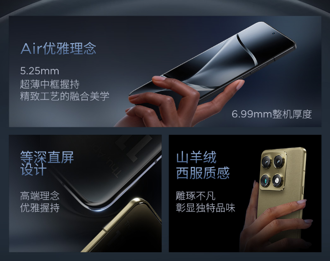 作为一款定位“轻薄影像AI旗舰”的新品,联想moto X70 Air Pro AI手机实现了外在轻盈与内在强悍的完美平衡。外观设计上,该机以6.99mm的纤薄机身与186克的轻盈体态,重新定义了轻薄影像旗舰的握持标准,带来无负担的握持体验。背盖采用融合西装纹理与斜纹织构的双色叠层PU材质,触感细腻且防滑耐污;机身中框选用5.25毫米超薄航空铝合金,搭配金属拉丝工艺,在保障强度的同时兼顾纤薄质感。