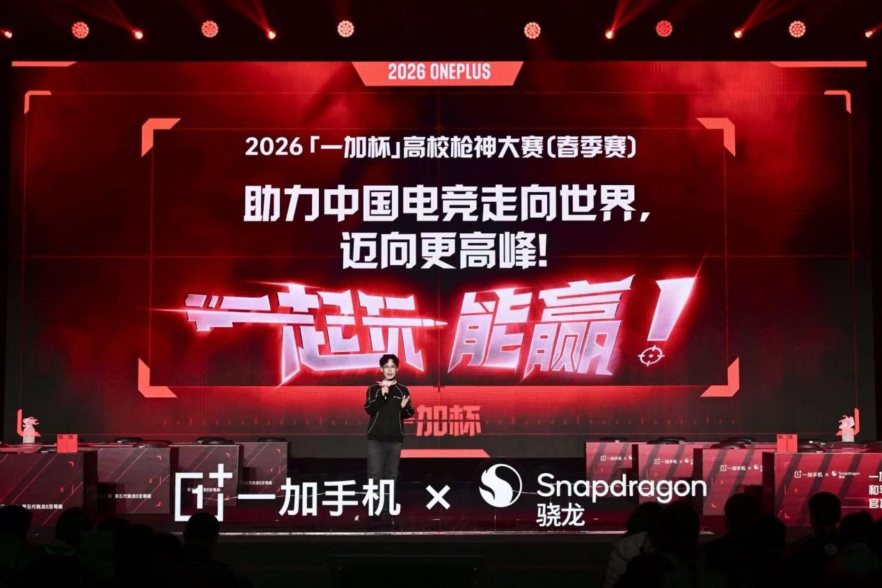 2026 年 3 月 9 日,北京,中国传媒大学。由一加主办的 2026 年度「一加杯」高校枪神大赛正式宣布开幕,这场获得《和平精英》官方授权的行业顶级电竞赛事,在现场行业嘉宾、高校代表、电竞爱好者的共同见证下,正式拉开全年赛事的帷幕。