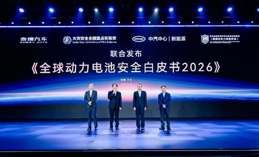 安全,从来不是简单的一项技术,而是一个标准、一套体系和一份承诺。在活动现场,奇瑞还携手火灾安全全国重点实验室、中汽中心丨新能源、国家市场监督管理总局重点实验室(储能与动力电池安全)等权威单位,联合发布了《全球动力电池安全白皮书2026》。古春山表示,这份白皮书凝结了奇瑞对电池安全的系统梳理与深度思考,作为中国汽车品牌的一员,奇瑞始终秉持着行业责任与全球视野,不仅要深耕自身的技术安全,更希望以技术积累和实践经验,为全球动力电池安全发展贡献力量。