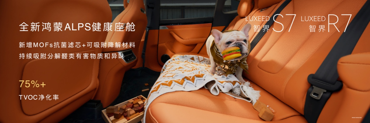 健康与舒适,成为此次智界双 7 座舱升级的核心关键词。焕新后的车型搭载全新鸿蒙 ALPS 健康座舱,核心升级了 MOFs 抗菌滤芯与可吸附降解材料,能够持续吸附分解醛类有害物质和异味,实现 75%+ 的 TVOC 净化率,让座舱成为 “会呼吸” 的健康空间。同时,超大座舱空间、丰富的储物设计,再加上双零重力座椅等豪华舒适配置,将驾乘体验的质感拉满,为用户带来极致的出行享受。而刘亦菲专属泊车语音包、无麦 K 歌、车外语音控车、隔窗对讲等趣味功能的加持,更是让智界双 7 成为真正贴合年轻人的智趣座驾,让出行不再单调。