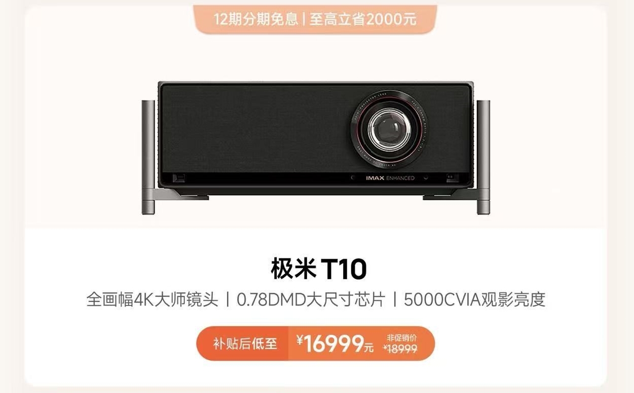 而对于追求顶级体验的影音发烧友,极米T10将是这个双十一的不二之选。T10作为全球首款采用0.78英寸DMD芯片的激光HDR电影机,以5000CVIA的观影亮度和专业级色彩表现,真正实现“把专业影院带回家”。该产品上市后迅速获得专业用户关注,双十一期间购买可享受至高立减2000元优惠,还有超长5年质保服务,品牌实力保障“超长待机”。