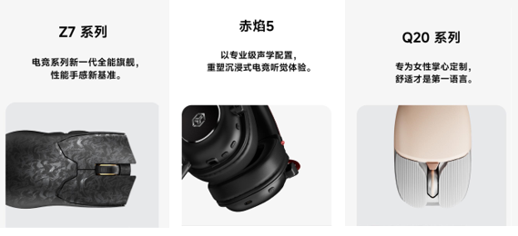 重磅新品中,MUSE 98以时尚配色与Gasket手感平衡办公与个性;Z7系列搭载高端芯片与传感器,以600小时续航和快充技术树立电竞新基准;赤焰5耳机凭借50MM大单元与7.1环绕声重塑电竞听觉;Q20系列则以人体工学设计与长续航,重新定义女性办公外设。全系列产品从文化跨界到技术深耕,从电竞竞技到日常办公,全方位推动输入设备的体验变革,彰显前行者引领行业潮流的创新实力。