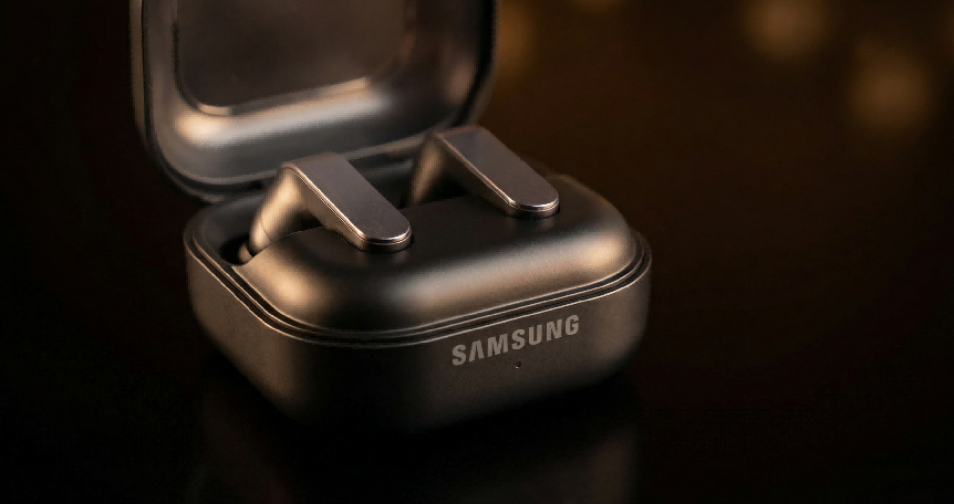 耳机本体延续了三星标志性的刀锋设计语言,同时在细节上完成了全面升级。单耳仅 4.6g 的超轻机身,几乎让人忽略它的存在;耳机柄采用大面积金属饰面,细腻的金属质感让整机的精致度再上一个台阶。