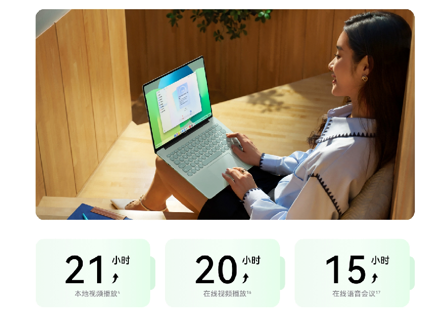 轻薄本的续航和散热,一直是移动办公的核心痛点。华为MateBook 14 鸿蒙版配备 70Wh 大容量电池,在日常使用场景下,能轻松支撑一整天的工作学习。官方数据显示,它可连续播放本地 1080P 视频 21 小时、爱奇艺在线视频 20 小时,即便是全程开启腾讯语音会议,也能坚持 15 小时,出差通勤不用时刻带着充电器。