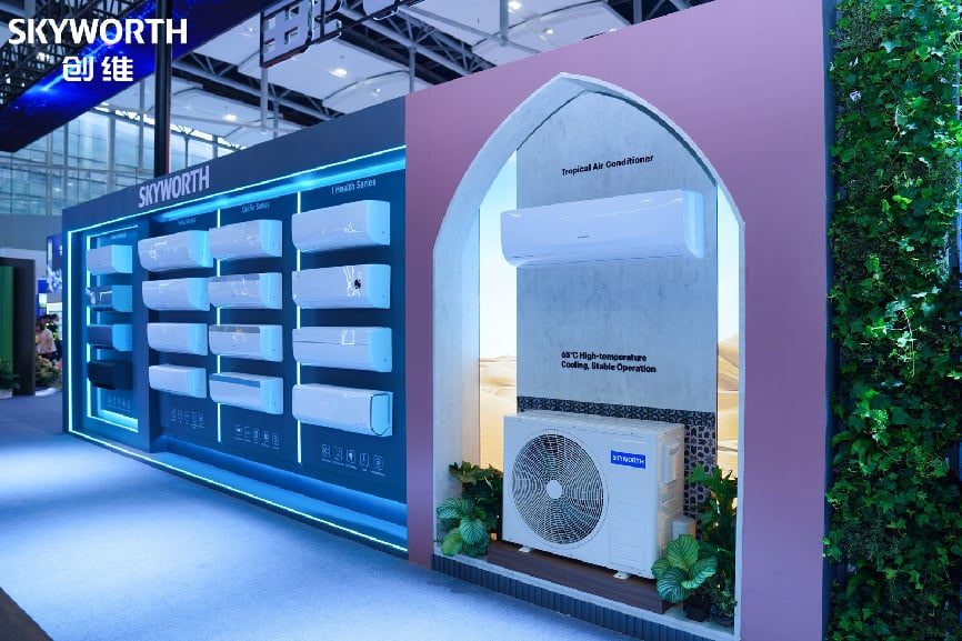 空调展区,海外高温地区定制的多语种离线语音、节能自清洁机型备受青睐;移动空调精准适配公寓与租赁场景。
