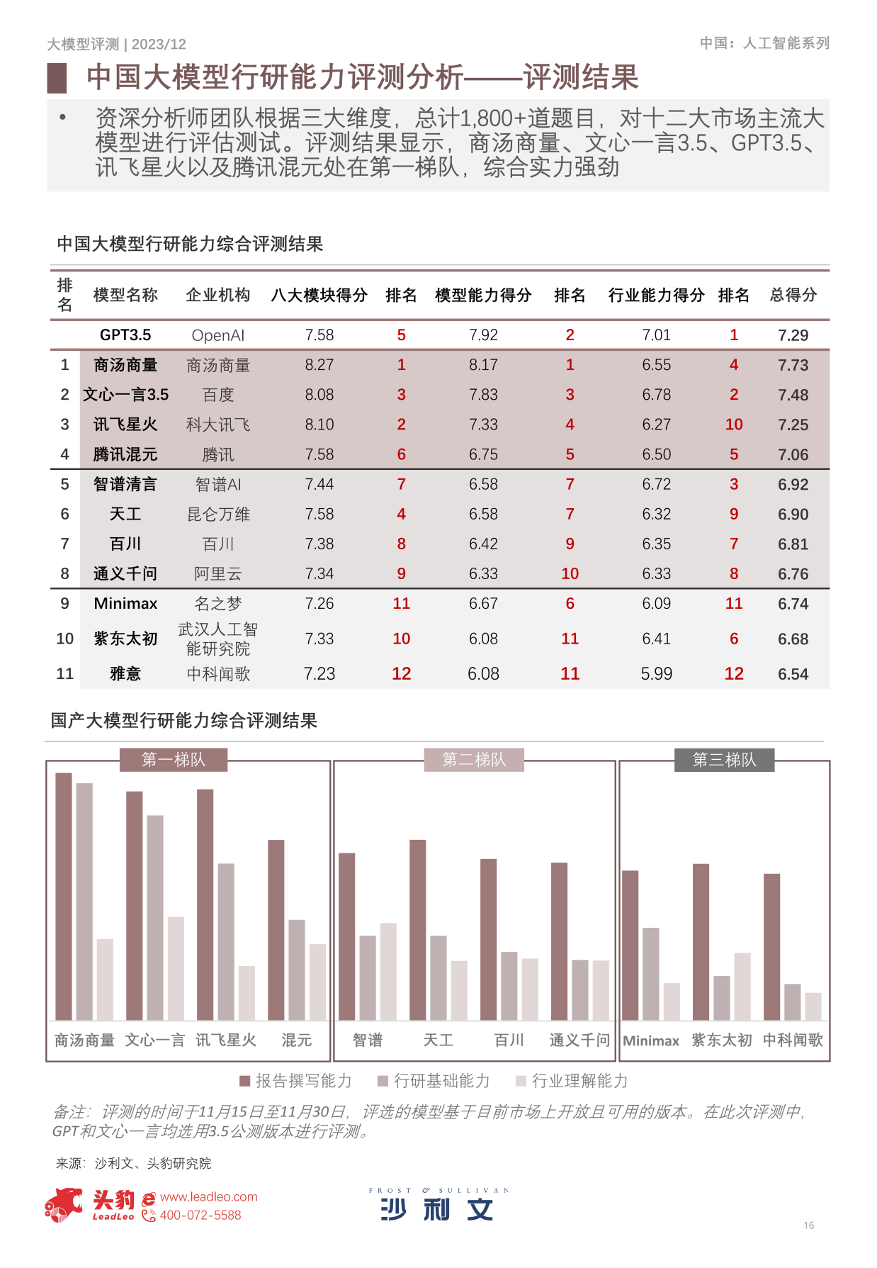 图:中国大模型行研能力综合评测榜单(来源:沙利文)