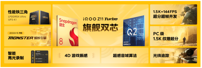 8 Gen5 + 自研 Q2 芯片 双芯狂暴输出!iQOO Z11 Turbo 2399 元起 战力拉满!