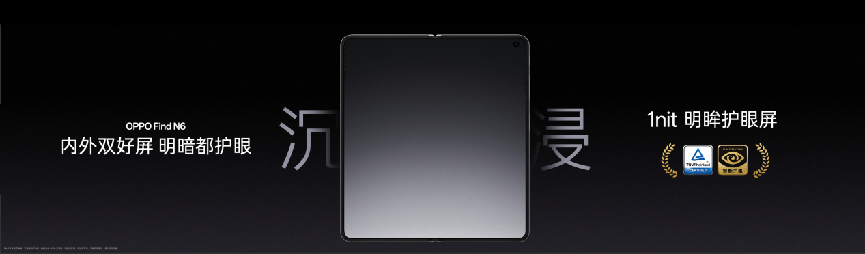 屏幕素质方面,OPPO Find N6 延续 OPPO 在显示领域的绝对领先优势,内外双屏均搭载 1nit 明眸护眼屏,暗光下显示均匀清晰,告别抹布屏困扰;内外屏全局峰值亮度提升至 1800nits,烈日强光下依然清晰可见。同时,这块屏幕更通过了德国莱茵 TÜV「金标」护眼认证,提供「亮光看得清,暗光更护眼」的全场景舒适体验。